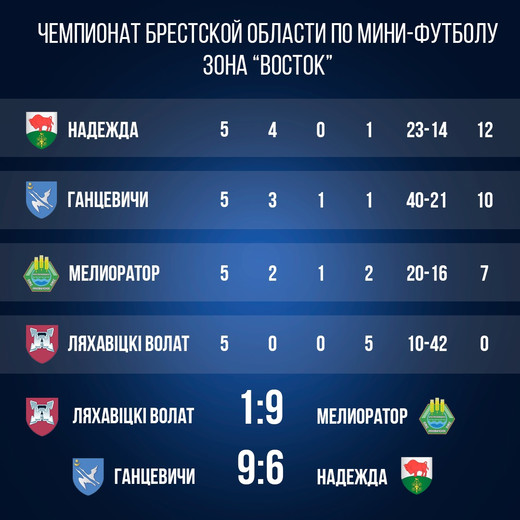 «Ганцевичи» — «Надежда» (Барановичский район) 9:6 (6:3)