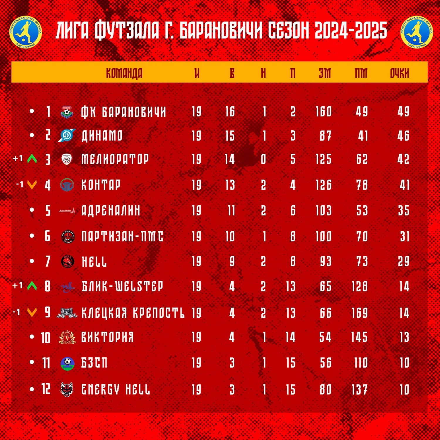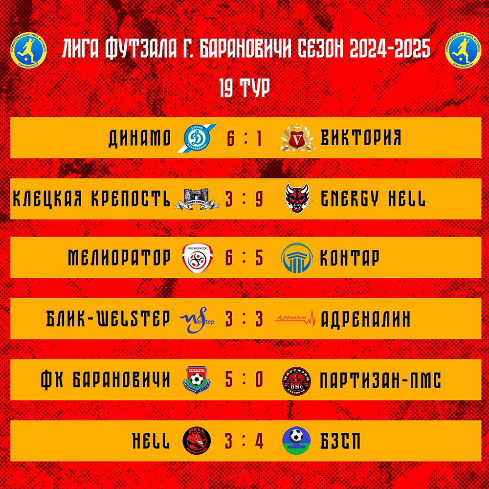 Благодаря победе в матче 19-го тура Любительской лиги футзала города Барановичи над командой «КонТар» из Клецка со счётом 6:5 ганцевичский «Мелиоратор» вошёл в тройку лучших текущего чемпионата.