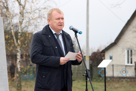 Открывая митинг, председатель Ганцевичского райисполкома Владимир Белов отметил, что в Год исторической памяти в Беларуси особое внимание уделяется сохранению правды о событиях минувшей войны. «Каждые новые поколения белорусов мы будем растить, передавая им память не только о подвигах их предков, но и о боли‚ которая сделала наш народ сильнее, научила беречь мир и спокойствие. Этот памятный знак является своего рода посланием из прошлого в настоящее, чтобы жители района помнили, а подрастающее поколение знало о тех событиях», — сказал руководитель районной вертикали.