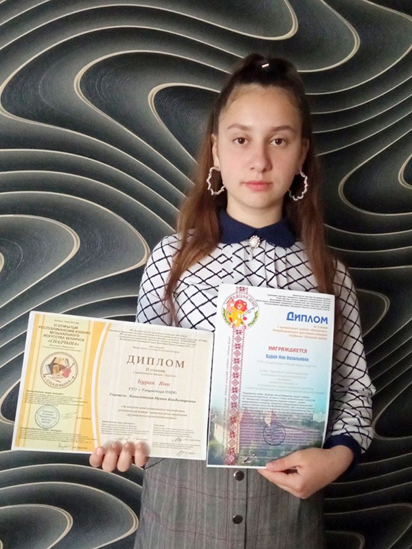 Дипломом лауреата второй степени была награждена учащаяся по классу фортепиано Яна Бурак, её учитель — Ирина Владимировна Ковалевская.