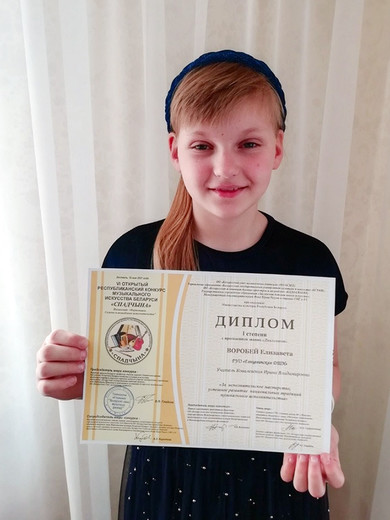 Ещё одна воспитанница Ирины Владимировны Ковалевской — Елизавета Воробей была награждена дипломом первой степени с присвоением звания «дипломанта».