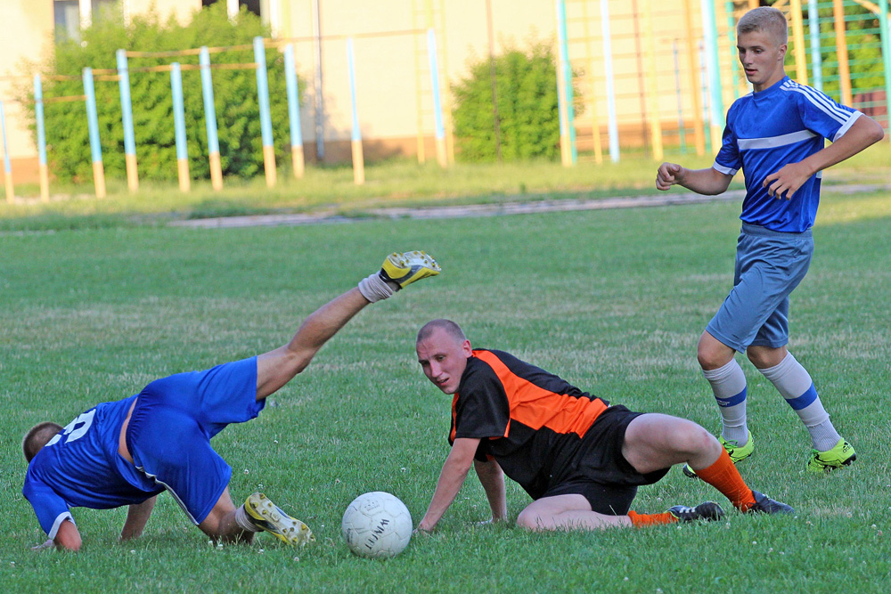 Иногда футболисты обеих команд боролись за мяч и в положении лёжа