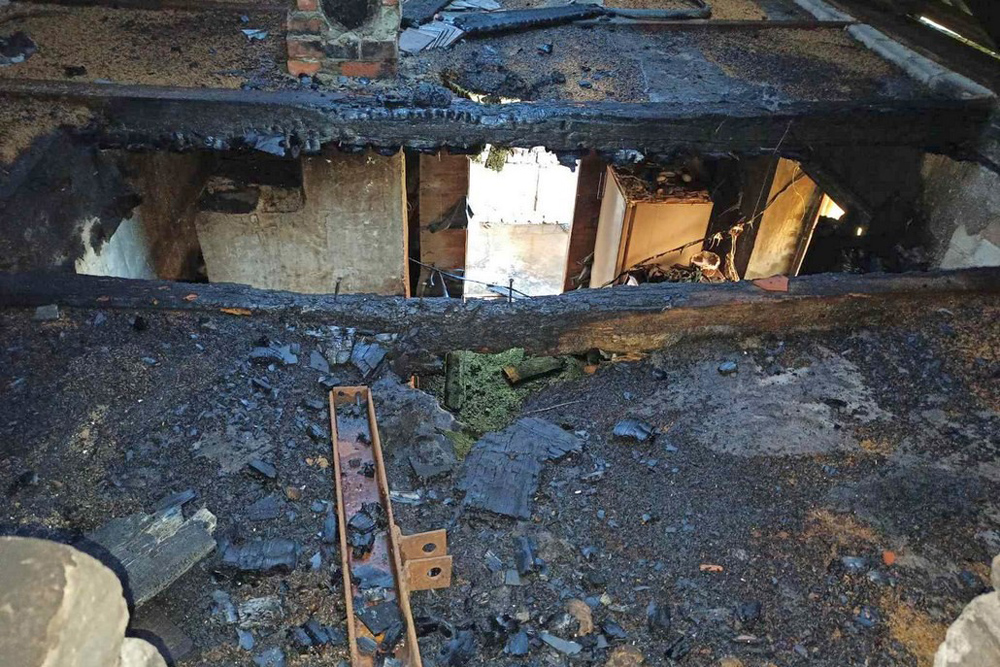 В результате пожара огнём повреждено перекрытие на площади 10 м² и имущество внутри. Пострадавших нет.